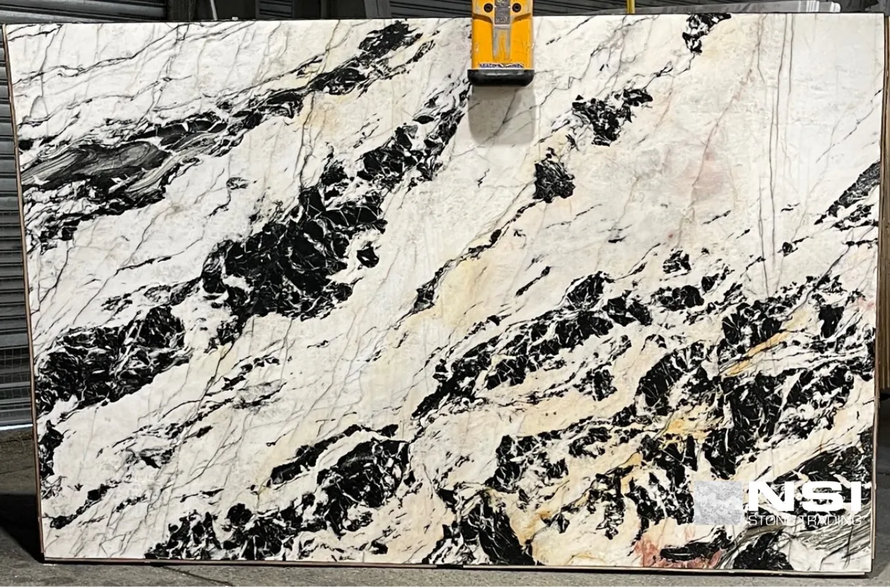 BAJKAL CRYSTAL 3CM Quartzite is a premium natural stone that epitomizes elegance and durability. This Quartzite is characterized by its stunning black background, subtly infused with intricate veining, which creates a dramatic and sophisticated look. It is an ideal choice for high-end kitchen countertops, islands, splashbacks, and bathroom walls & floors, able to withstand daily wear and tear while maintaining its beauty.