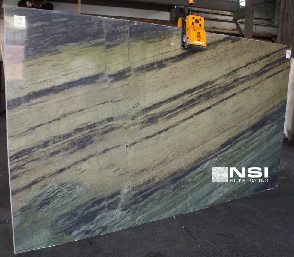 BAMBOO 3CM Quartzite is a distinctive and high-quality natural stone, known for its durability and unique aesthetic appeal. This quartzite features a vibrant green background, subtly infused with natural veining and additional hues, creating a striking yet elegant appearance. It is an ideal choice for areas that require both beauty and resilience, such as kitchen countertops, bathroom vanities, and backsplash applications.