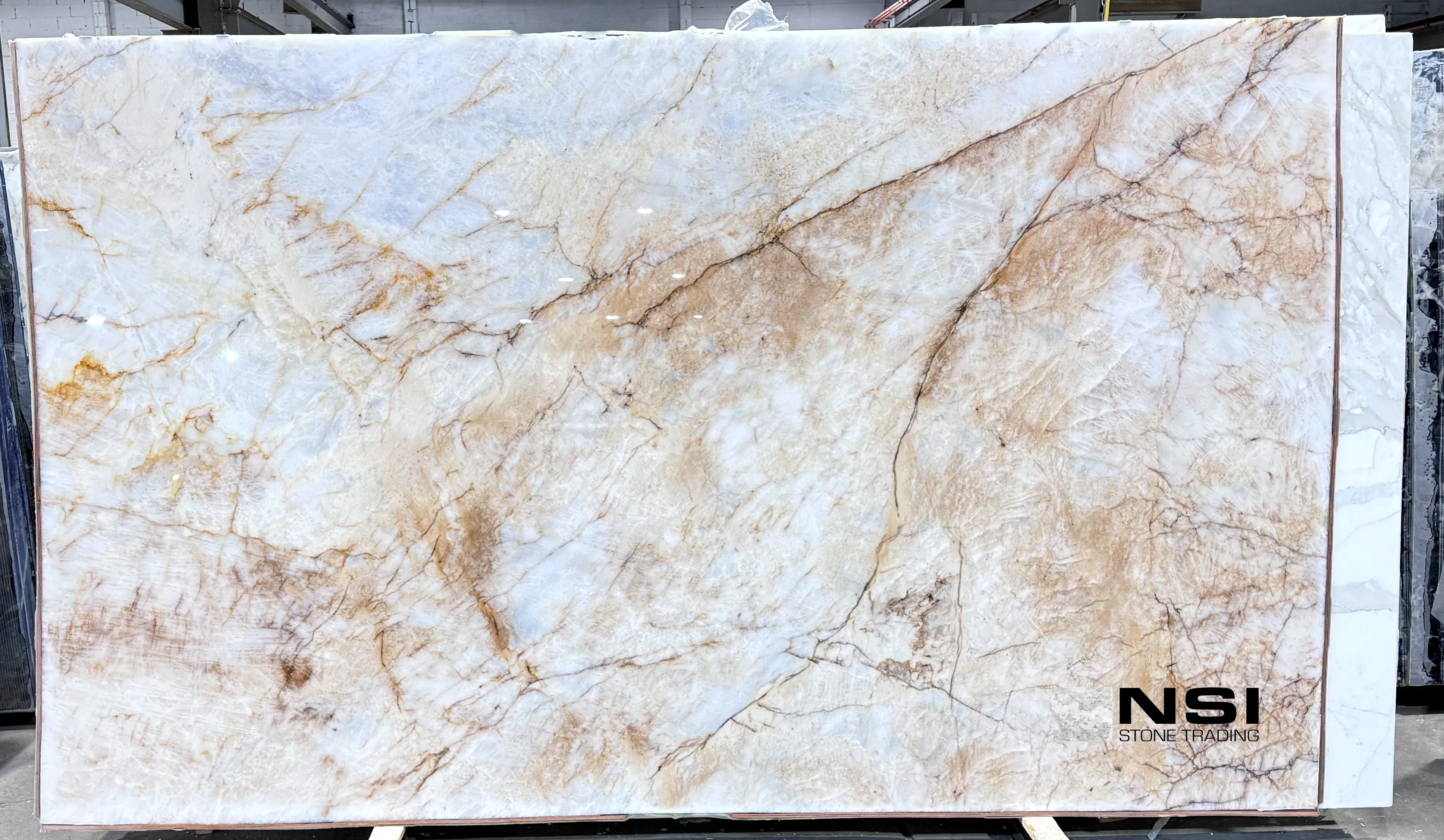 CRYSTALLO SUPERIOR 2CM Quartzite is a premium natural stone renowned for its stunning beauty and durability. This quartzite features a beige background, subtly infused with unique veining that adds a tone of elegance. It is an ideal choice for various high-end applications, including countertops, bathroom vanities, and wall cladding.