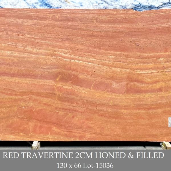 Size: 130"x66" Color: Red Finish: Honed/Filled Thickness: 2CM Origin: Italy LOT: 15036