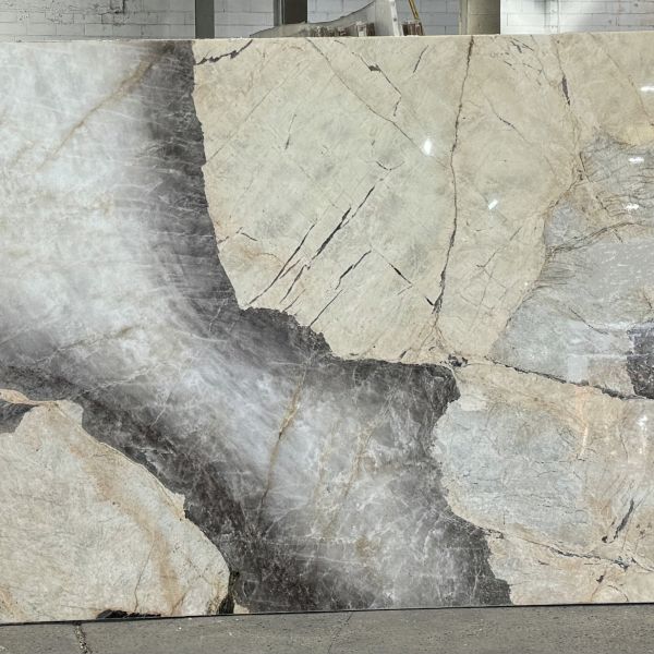 Size: 132"x76" Color: Grey, Taupe, White Veins Finish: Polished Thickness: 3CM Origin: Italy LOT: 9245